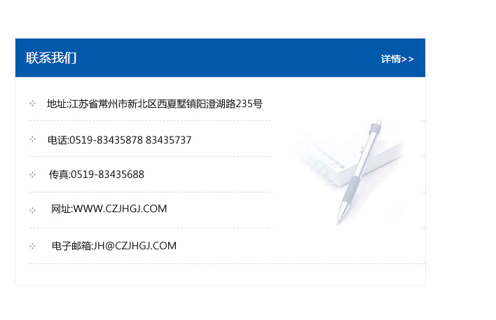 地址:常州市新北區友邦商務大廈1幢16、17層  電話:0519-85101652  傳真:0519-85112595  郵編:213022  網址:www.cz-jiayue_cn.thfanghuwang.com  郵箱:xiajifengaa@163.com